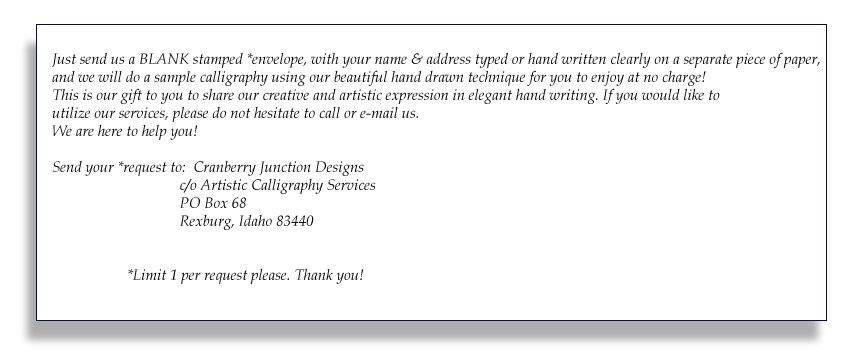 Calligraphy Services offered Gallery Prices Lettering Styles Tips/Advice Contact Us Order Form to print Home
