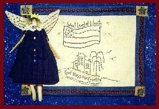 Primitive stitchery used for this Americana motif. A wonderful design